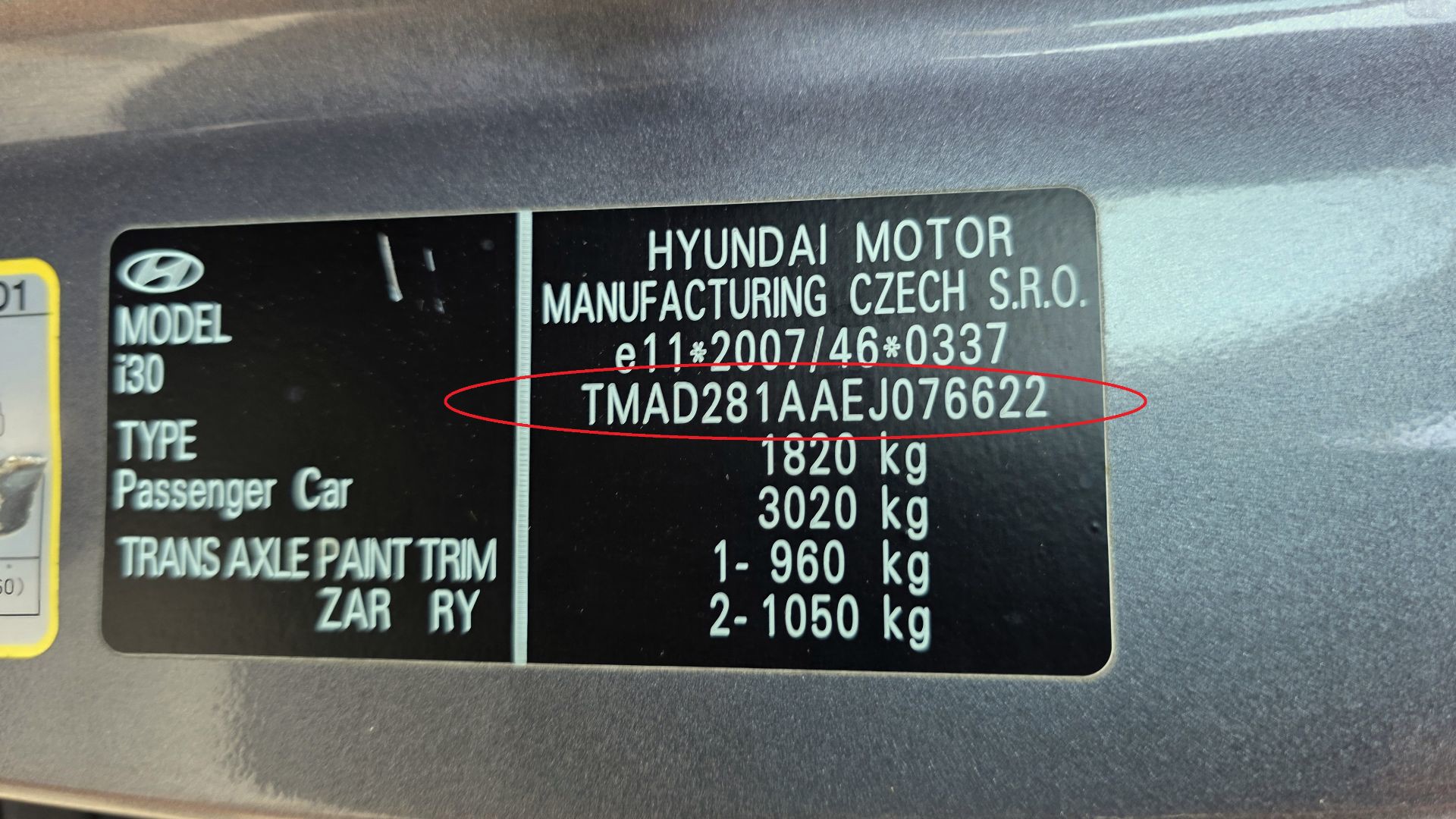 NUMER VIN - WIDOCZNY NA ZDJĘCIU W OFERCIE